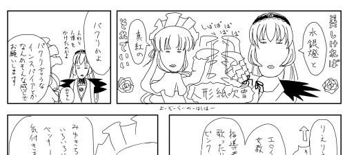 2006/04/23 ◆帰ってきた部屋がものっそい散らかっています。 そんな訳でサンクってきました。おーつー。 スペース到着、うわ周りみんなローゼン!漏れ浮いてる!!! 1100開場ワー。 座ると漏れなく眠ってしまうのであちこちおもむく事に。 ねこまたさんがどっしりとそれはもう なんか半分以上記憶がないんですが盗んだのは誰ですか。 なんかもうすんげい死にそうだったので、 うにゃさんとそのまま秋葉。うん、猛烈に空腹。 秋葉で偽眼鏡の人のイベントかPV録りか何かがありましたが タイトーにてうにゃさんと別離。 ◆はくしゅれすはまた起きたら〜ばりねもい