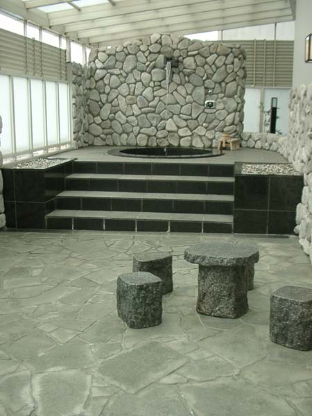 ホテルの個室露天風呂です! 打たせ湯つき。おまけに湯船も広かった! 唯一の欠点は、温泉のような保温性のあるお湯では ないため、一番熱くしたにもかかわらず 3分と入っていられなかったこと・・・。 冬は厳しいです、くすん・・・。 |