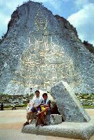 | 山に描かれた仏陀の絵。 シンガポールからサポートに来ていたMr.CHEOKと記念撮影。 彼らPEがいてくれると仕事が非常にやりやすい。 |