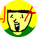 | 今度は偉そうな人を描いてくれました。 まず、左右の目のバランスがかなり偉そうですね。 そして真っ赤な唇…極めつけに鼻から出ている何か… どれをとっても偉そうとしか言いようがない絵です(笑) |