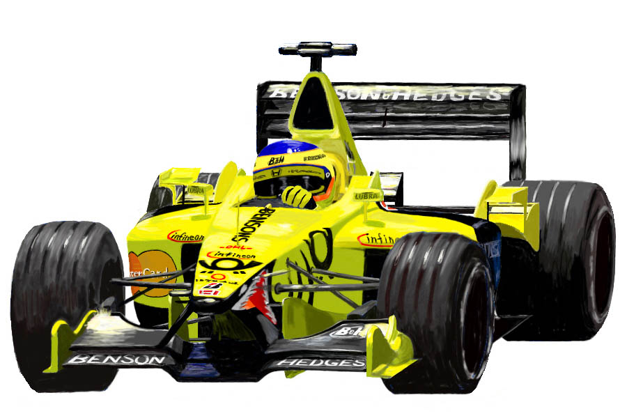 ようやく第2作目完成です。これはジョーダンというチームのマシンです。97年は蛇、98年から2000年まではスズメバチ、そして今年はサメ。この黄色の派手なマシンに印象的なこれらの生物。これだけインパクトのあるマシンはありません!!今回も制作期間10日程と苦労して描きましたが、やっぱり難しいですね…これからも色々描いて練習します。ただ、かなり疲れたのでしばらくTOPの更新はないかも… |