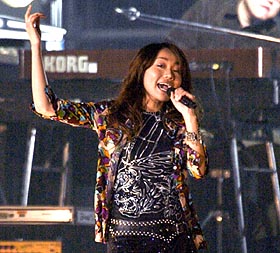先月末、一部女性週刊誌に「T・M・R・」こと西川貴教(31)と離婚の危機にあると報じられた「PUFFY」の吉村由美(26)が16日、東京・渋谷Q―FRONTで行われたニッポン放送「原千晶のSundayサウンドWalker」に出演。デュオを組む大貫亜美(28)とともに登場した吉村は、西川との破局報道については一切コメントしなかった。 |